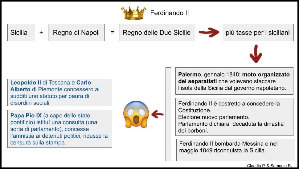 Schemi del periodo storico italiano dal 1848 al 1874 ovvero tutte le vicissitudini per raggiungere l'unità d'Italia. Carlo Alberto, Vittorio Emanuele II, Giuseppe Garibaldi, Massimo d'Azeglio e Camillo Benso conte di Cavour.